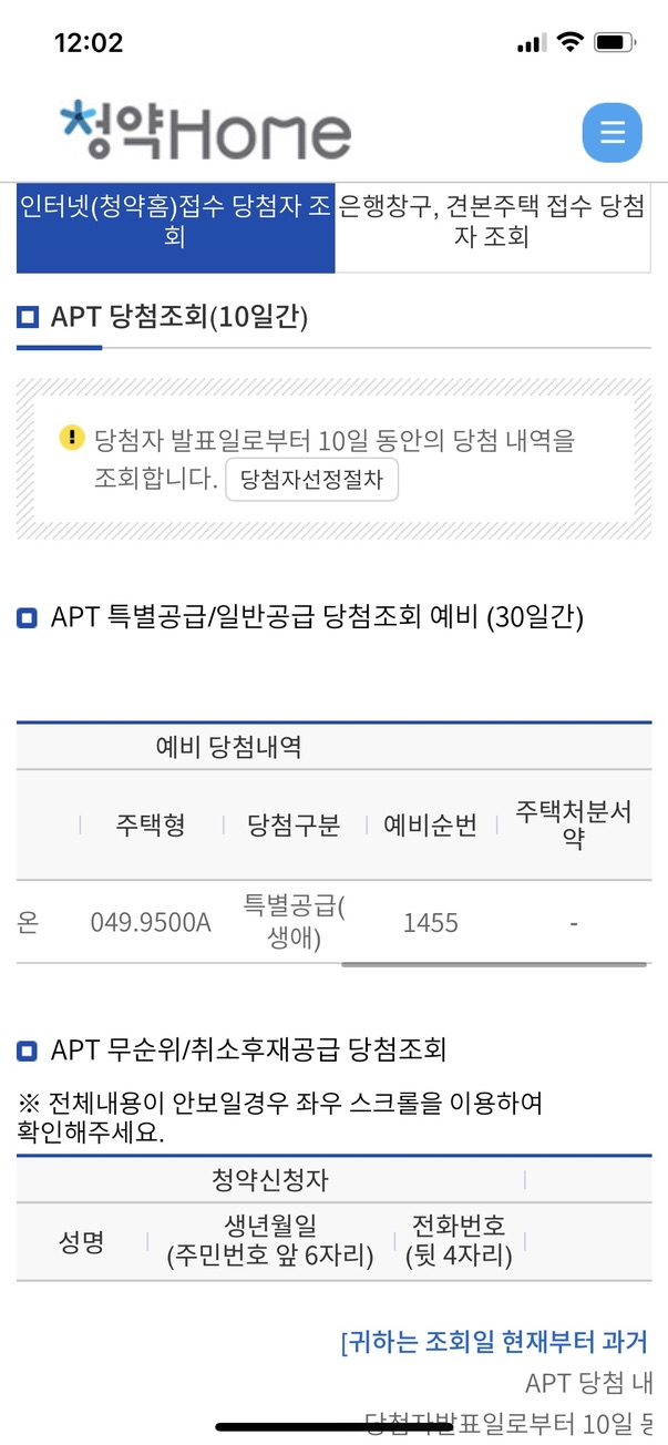 12시 되자마자 청약홈 접속! 결과 확인해보니..