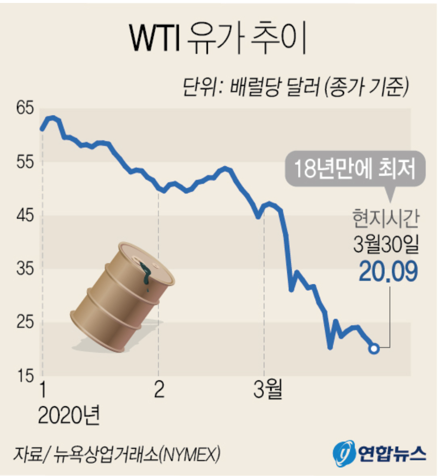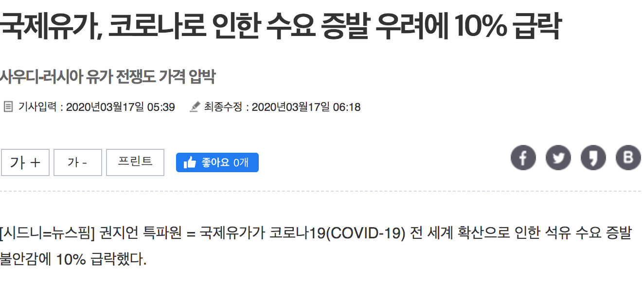 최근 뉴스를 보면 코로나 사태 뿐만 아니라 "국제 유가 폭락" 이라는 단어를 쉽게 볼 수 있다.