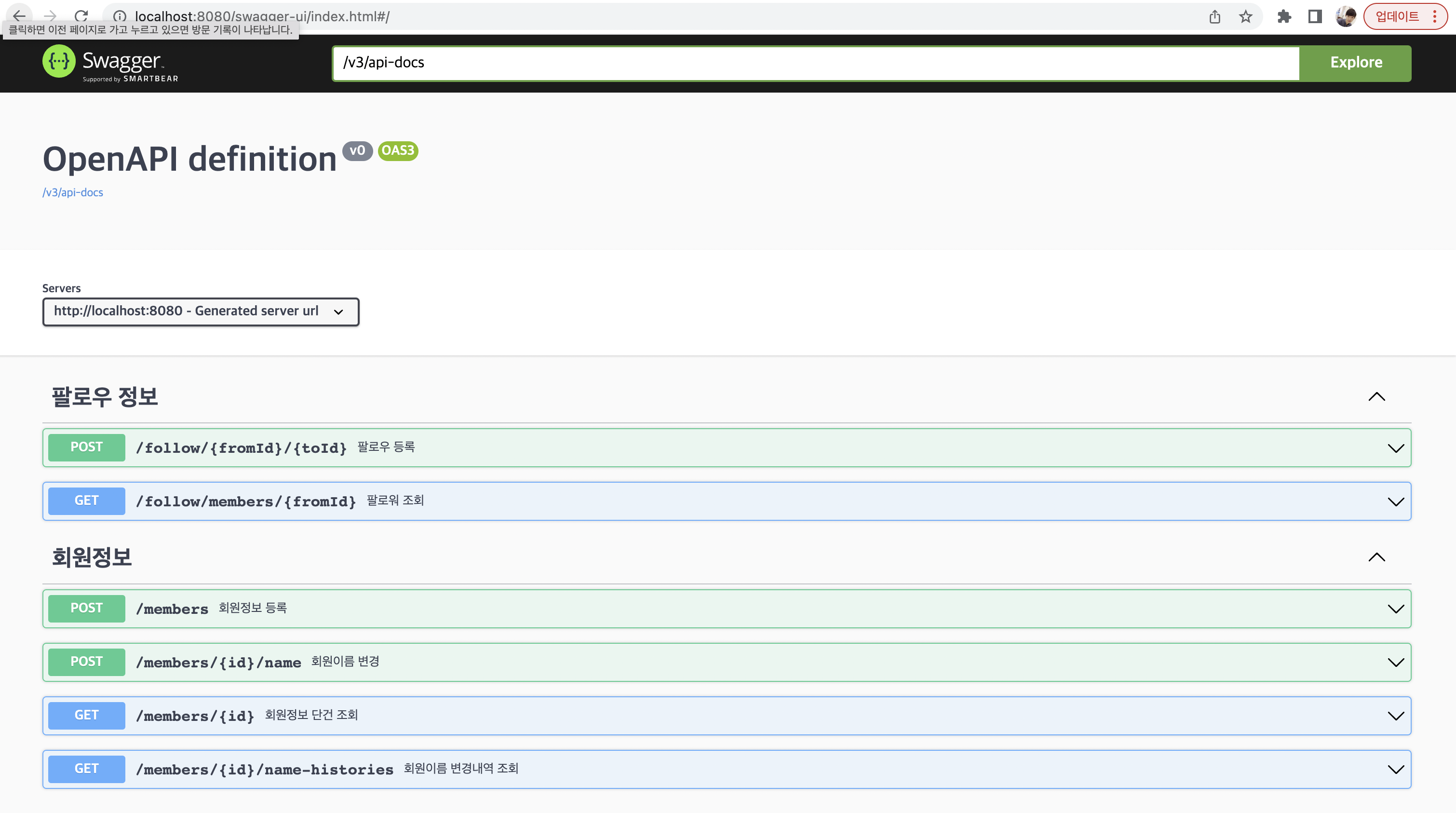 Swagger-UI 접속 Url : http://localhost:8080/swagger-ui.html