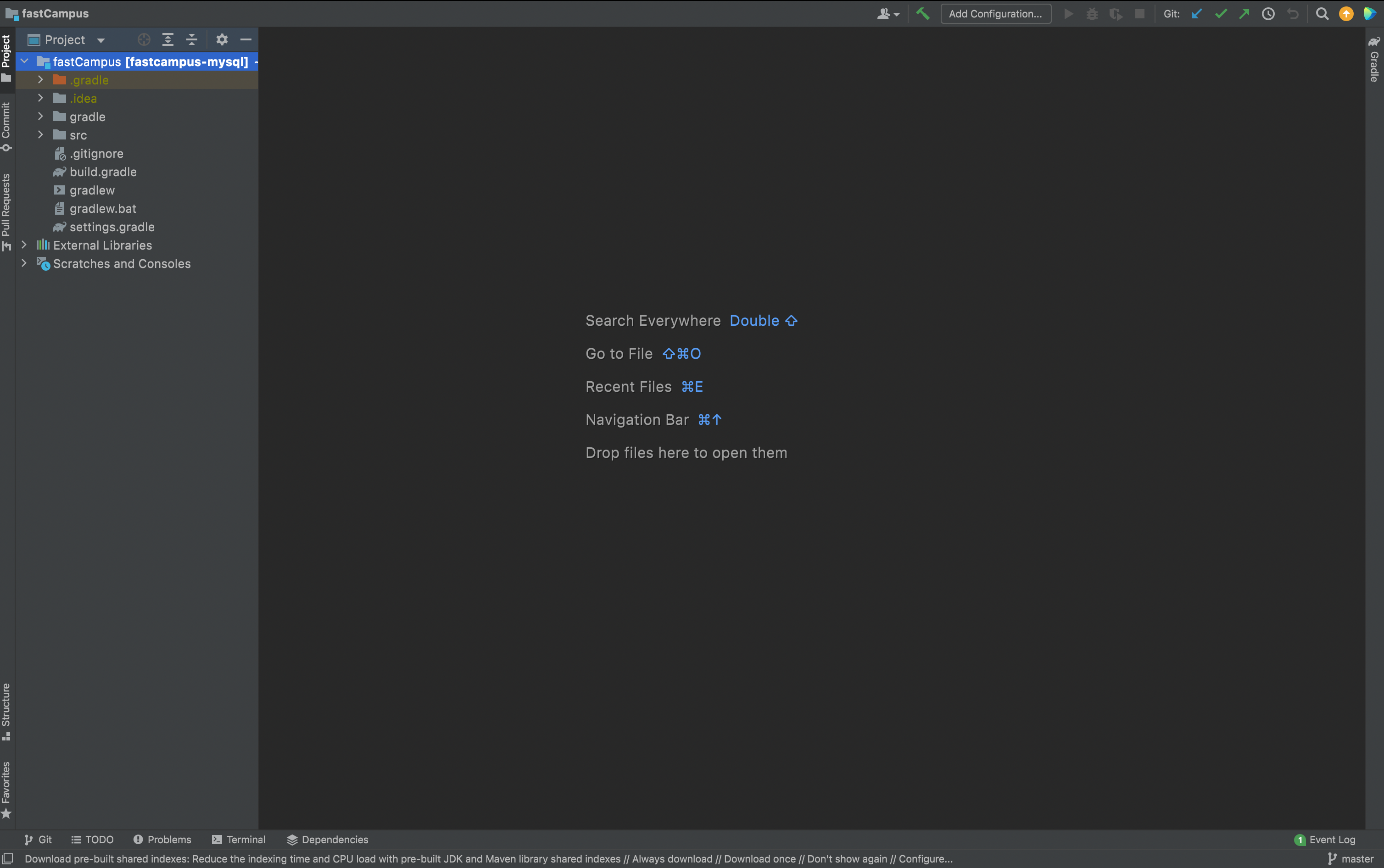 초기 프로젝트 완성된 IntelliJ 화면