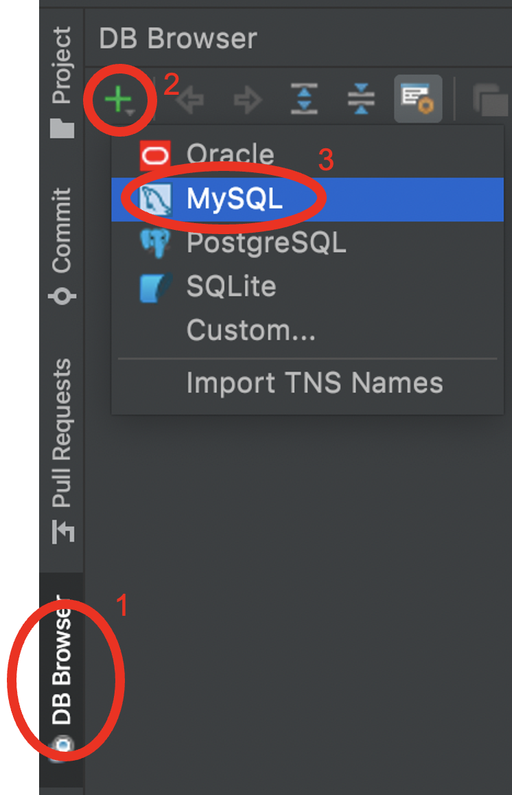 재시작하면 왼쪽 Tab에서 아래와 같이 DB연결을 할 수 있다.