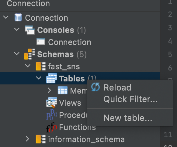 Tables에서 reload하시면 생성된 테이블 확인하실 수 있어요
