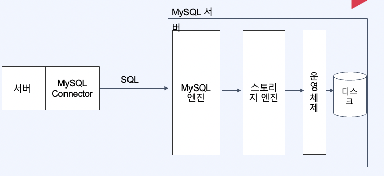 서버가 데이터베이스로 요청을 하면 MySQL 내부에선 MySQL 엔진 -> 스토리지 엔진 -> 운영체제 -> 디스크로 접근하여 데이터를 서버에게 최종적으로 전달하게 됩니다. 이번 포스팅에선 MySQL 엔진에 대해 자세히 한번 알아볼게요