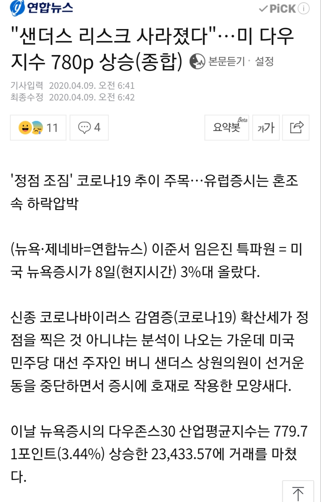 버니 샌더스가 미대권을 포기하면서 정치적 이슈가 해결됨에 따라 증시가 올라간 것이다.