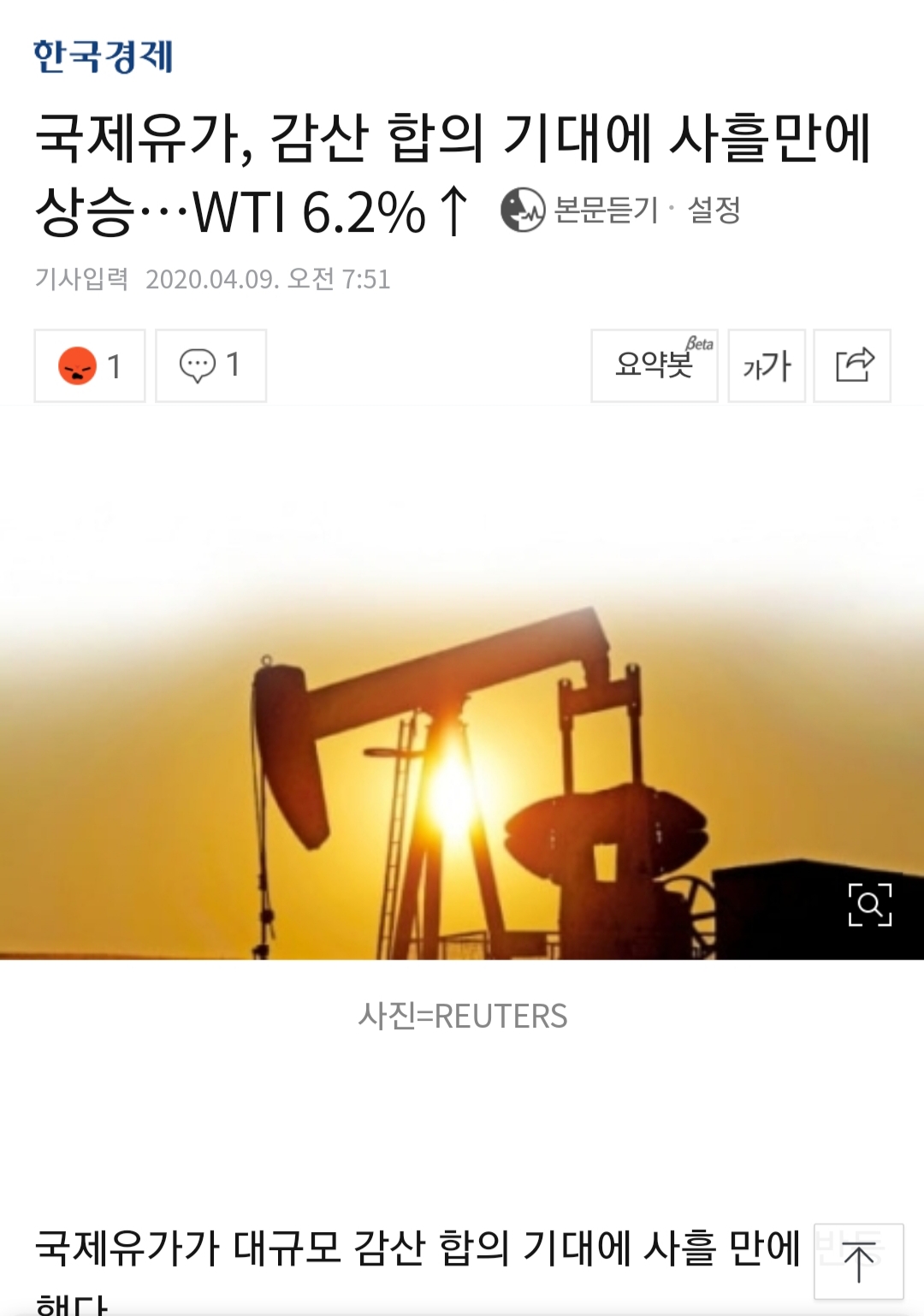 내일(9일) 감산합의 기대로 오른것으로 보인다.
