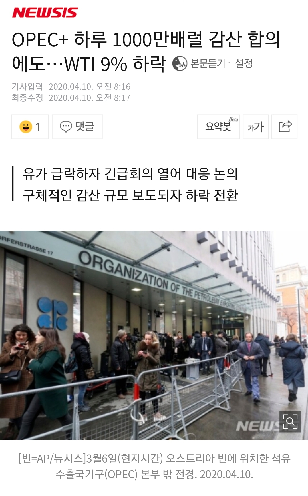 2000만 배럴 감산 기대였는데 1000만배럴로 낮추자