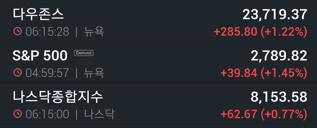 어제 국내,미국 증시 둘 다 상승했다.