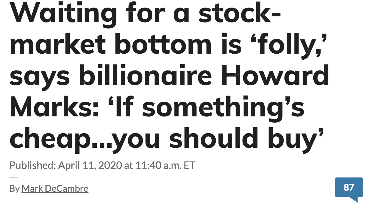 그럼 주식은 언제 사도 될까? 아래 월스트리트의 살아있는 전설이자 가장 유명한 가치 투자자 하워드 막스의 인터뷰가 있다.