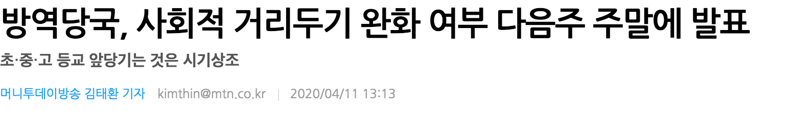 이에따라 아직 시기상조이지만, 한국은 사회적 거리두기 완화 등을 검토중인것 같다.