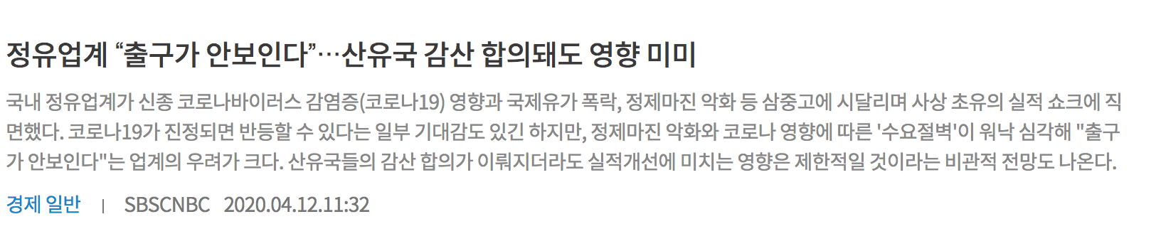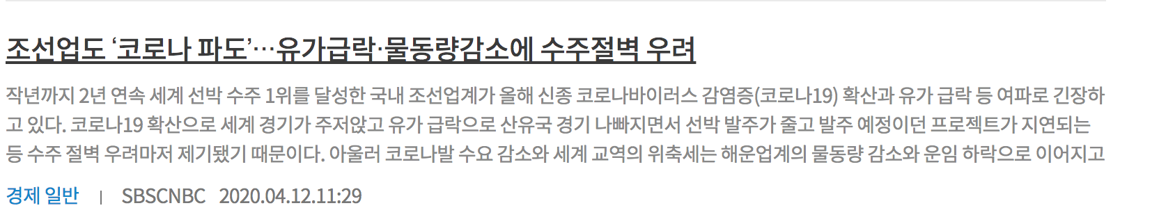당장 코로나가 괜찮아 진다고 해도 기업들이 회복되는데는 적지 않은 시간이 걸릴 것 같다.