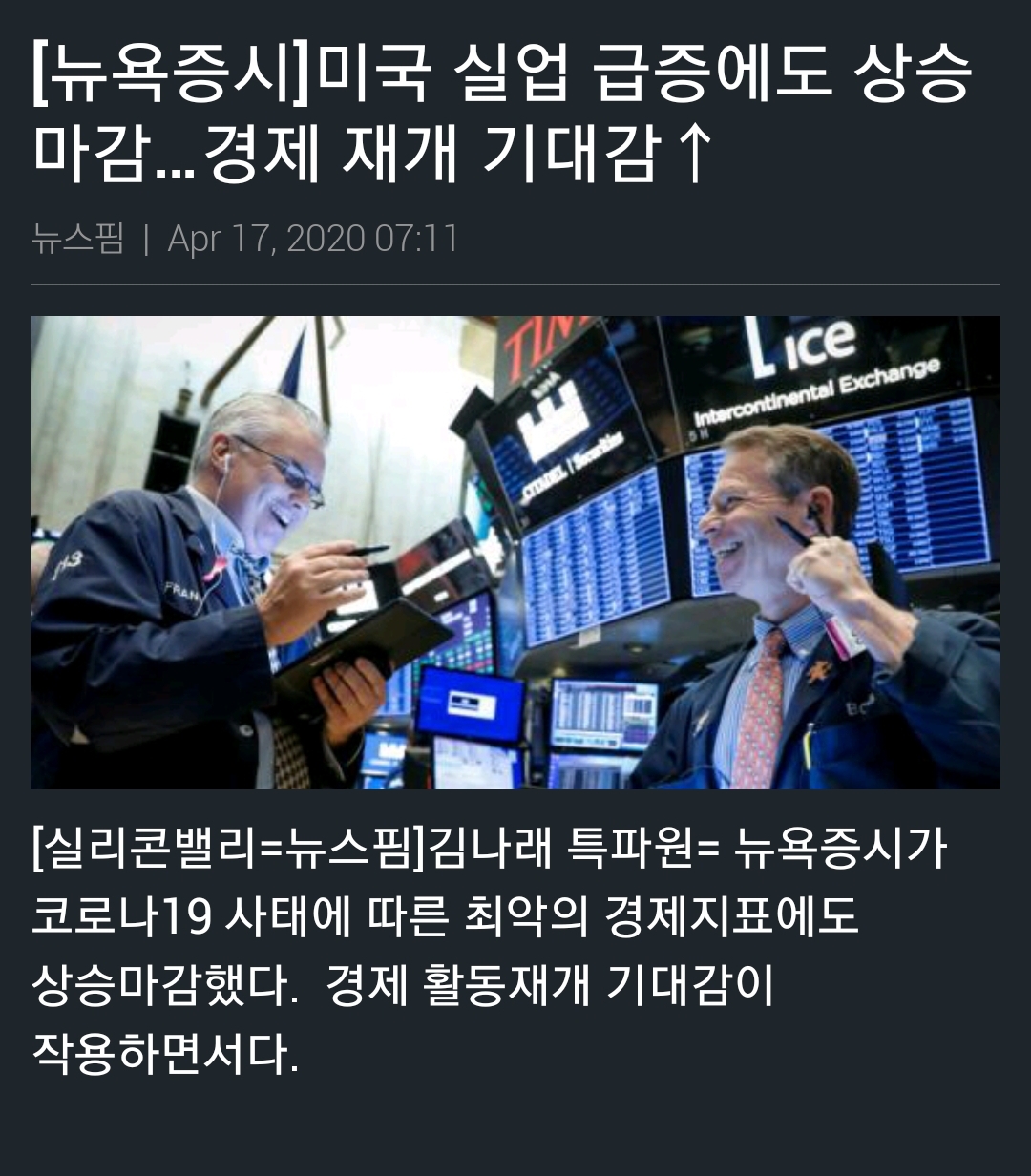 실업수당 청구 최대인 것에 비해 코로나 전망이 나아질거란 기대감에 상승한걸까. 관련 뉴스가 있다.