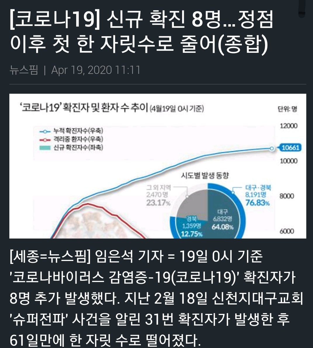 한국은 드디어 하루 코로나 확진자가 한명대 까지 낮춰졌다.