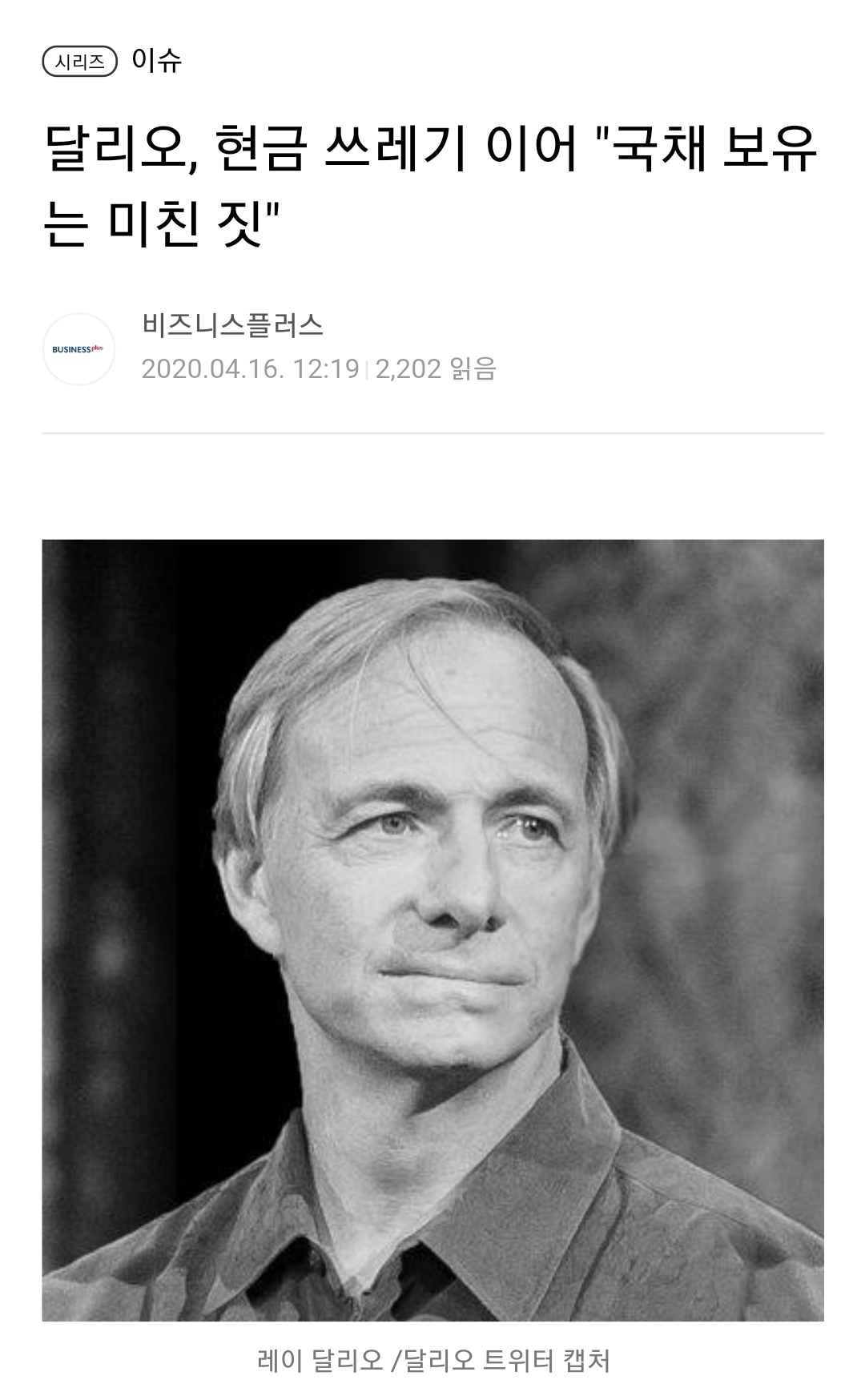 얼마전에도 레이달리오가 코로나 및 경제 관련 인터뷰를 진행하면서 현금은 쓰레기라 언급했다. 그에 이어 이번엔 국채도 쓰레기라 언급한 것이다.