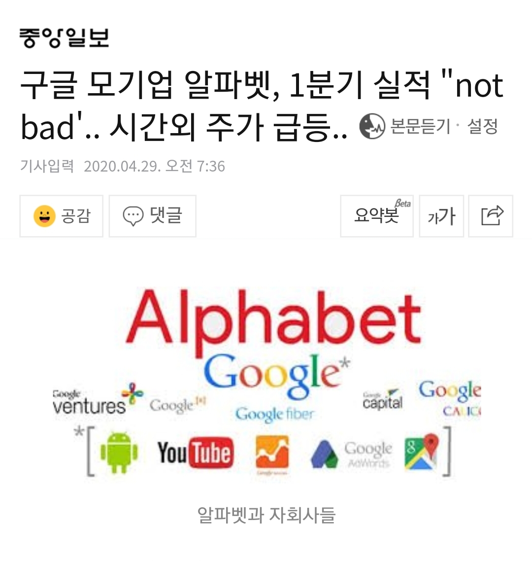 구글은 실적발표 했으니 한번 확인해보면