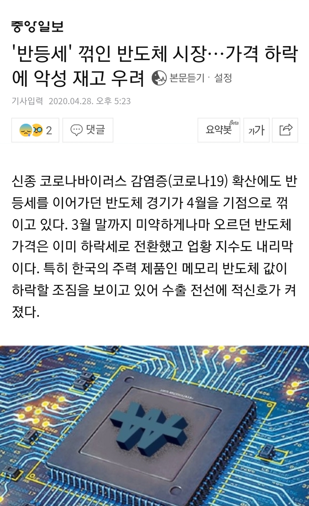 4월초부터 반도체 D램 가격이 하락중이란 것이다.