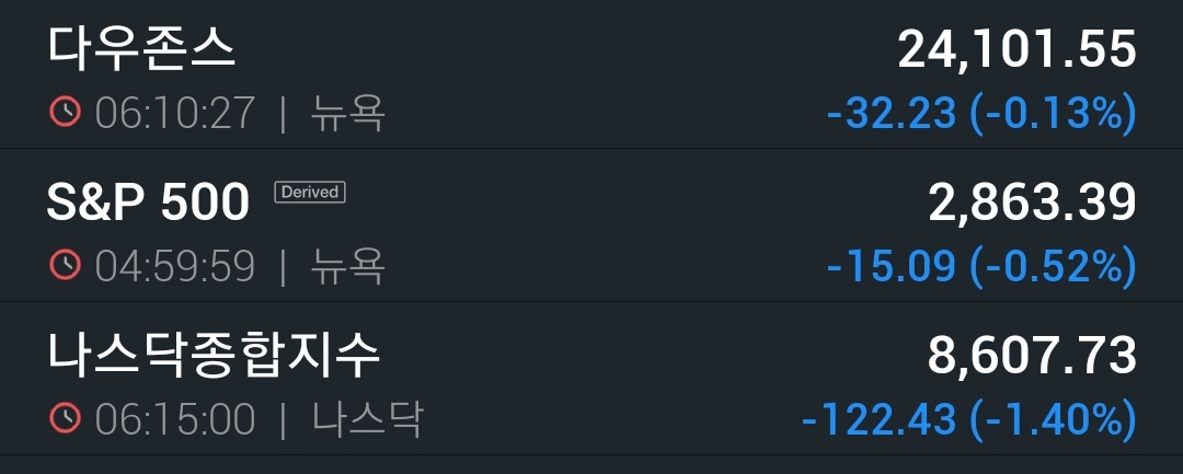 어제 자기전까지만 봐도 상승중이었는데 주요 기술주(FAMANG등) 투자자들이 빠져나가면서 소폭 하강 했다고 한다.