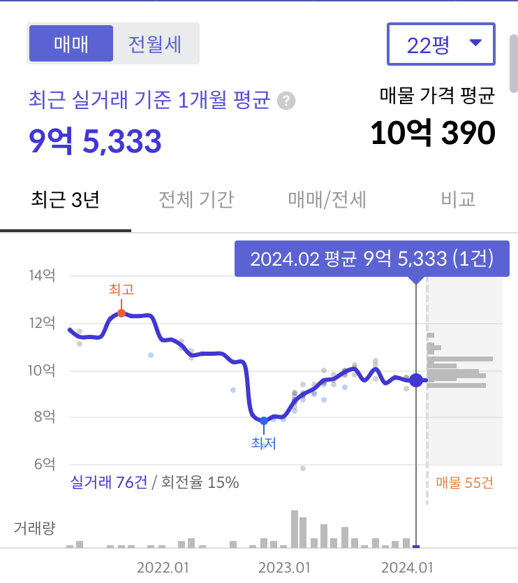 네이버 호가도 9.4~11.5억 (*24.03기준)으로 실거래가와 비슷합니다.