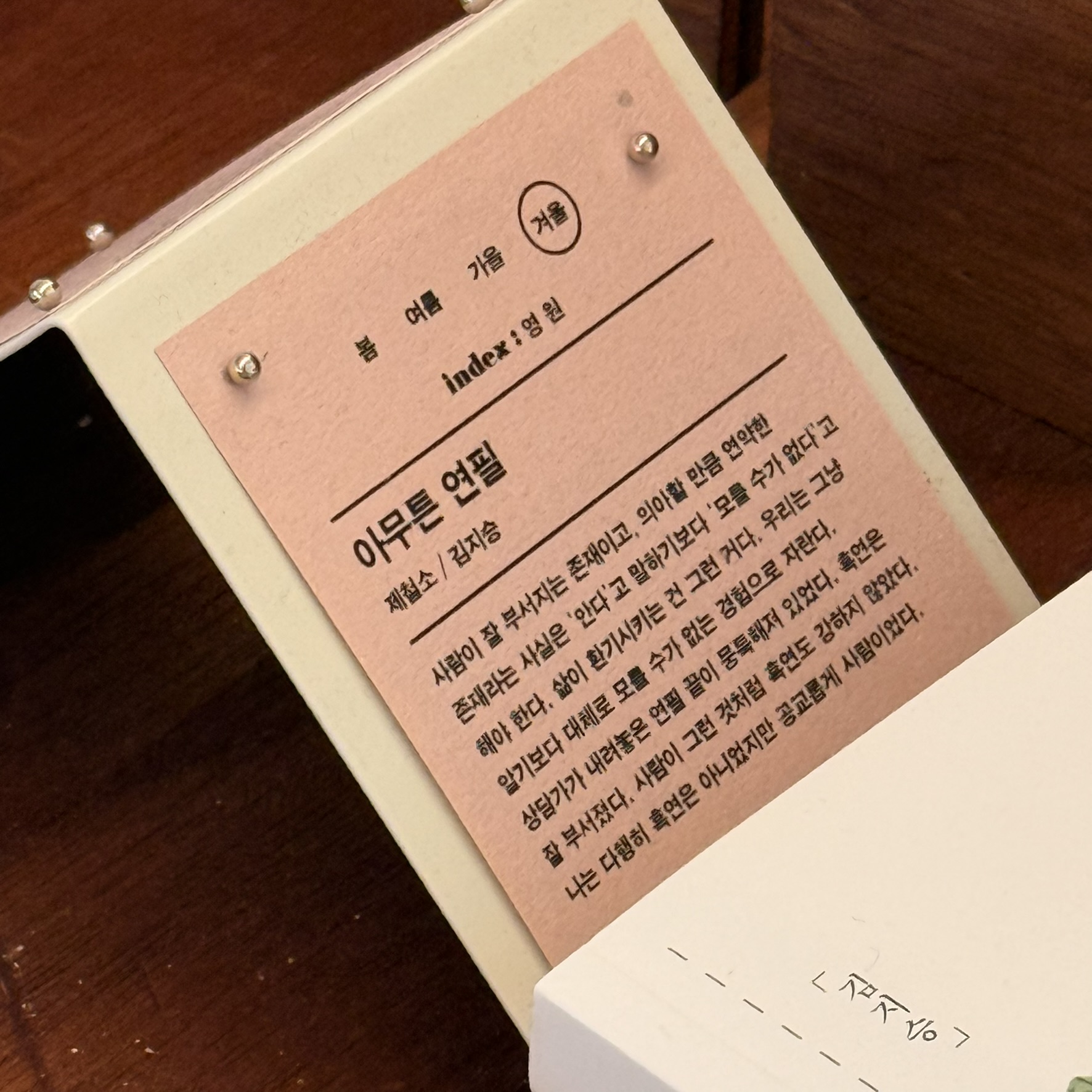 지금인 26년 2월 겨울인데, 겨울 감성에 어울리는 책과 간단한 소개글이 적혀있어