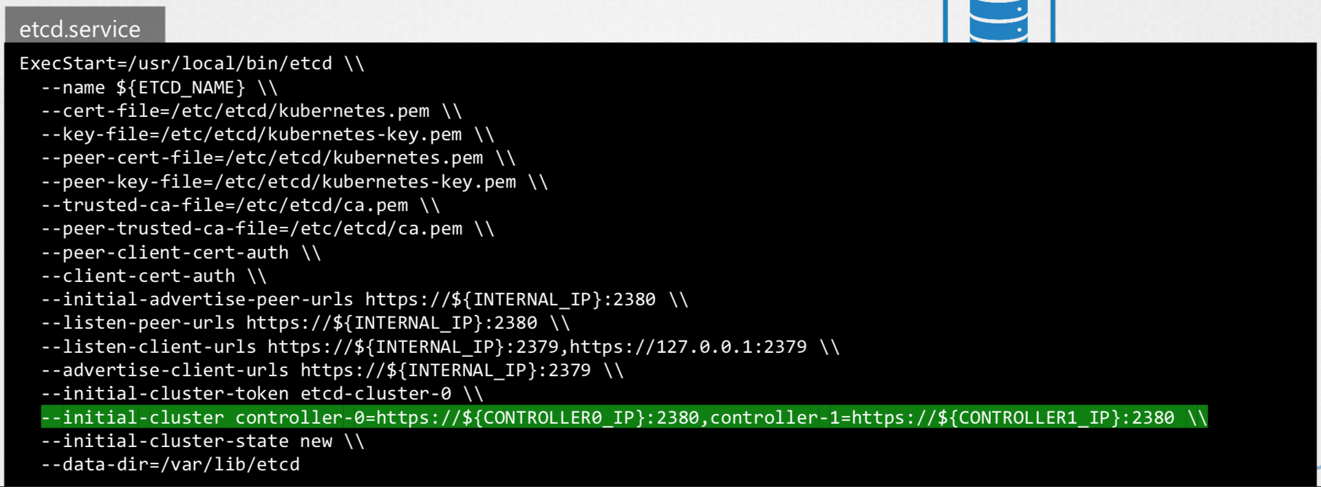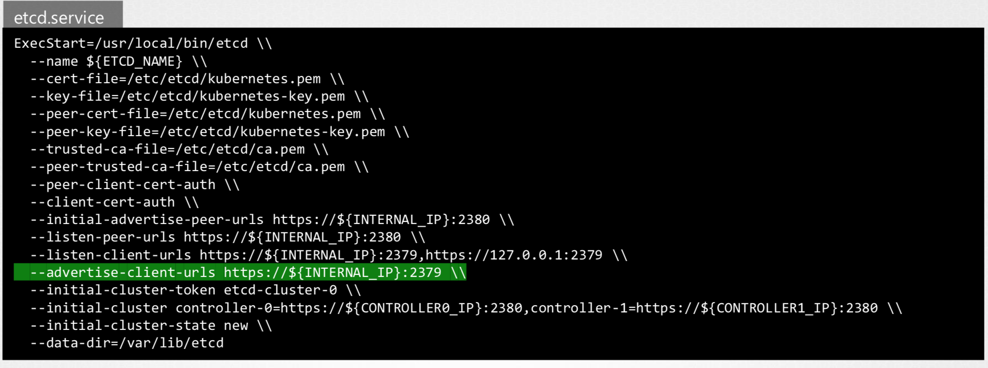 HA(High Availability) Environment에서 Master 노드는 여러개가 될 수 있으며 이에 따라 ETCD로 여러개가 될 수 있다. 이때 ETCD 사이의 Setting를 확인하기 위해 아래와 같이 initial-cluster option에 각 ETCD service를 등록할 수 있다.