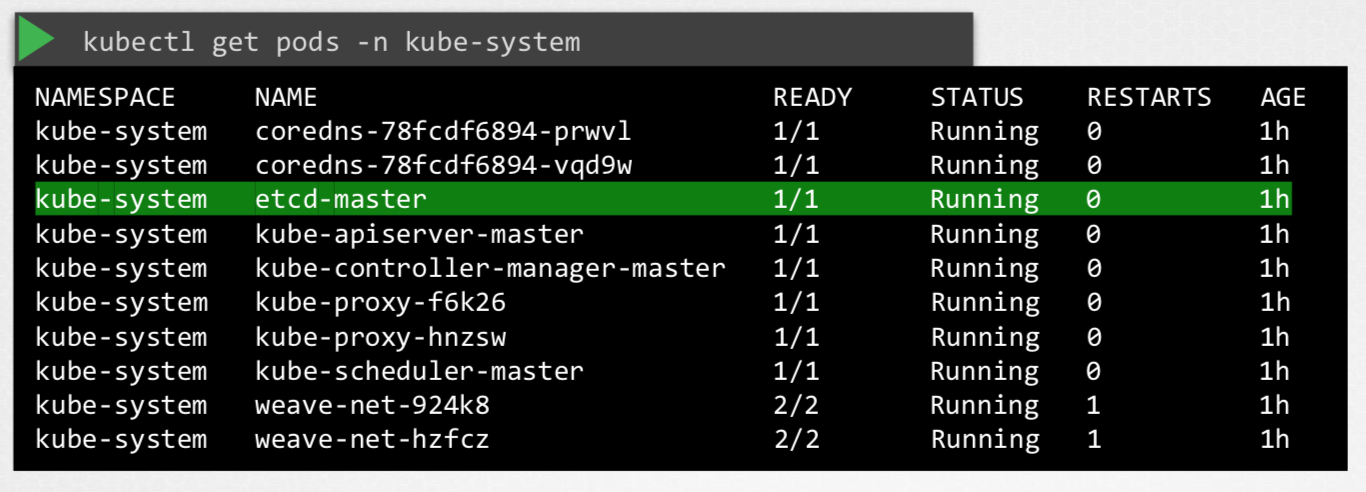 kubeadm을 통해 ETCD를 setup한다면 kubeadm이 POD 형태로 kube-system namespace에 ETCD Server를 배포한다.