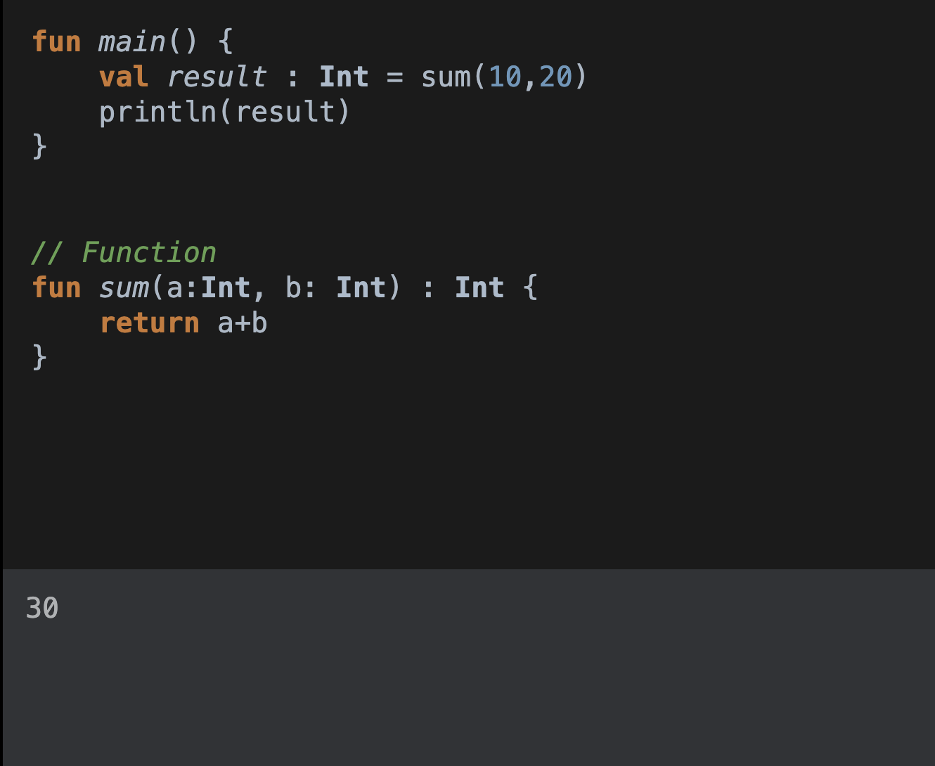 Java와 달리 함수 앞에 fun이라는 키워드가 들어갑니다.