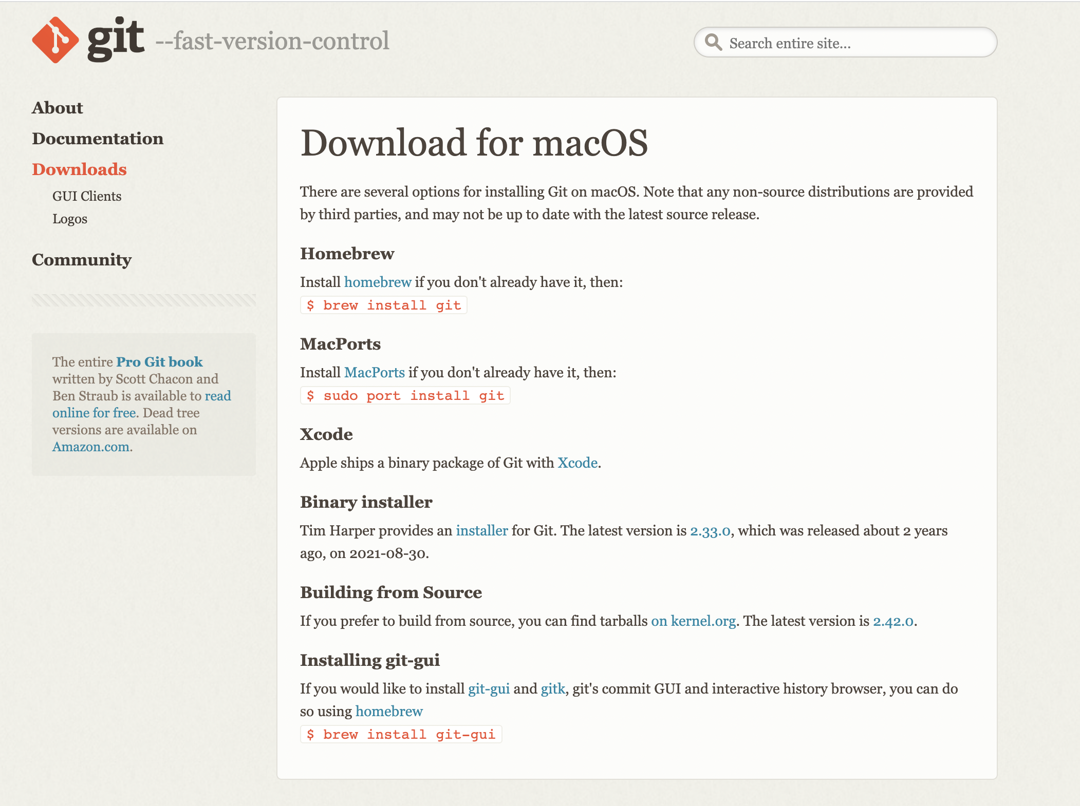 Source 버전 관리를 위해 Git설치를 해보겠습니다. 아래 링크에서 접속 후 Download에 가시면 여러 다운로드 방법이 있어요