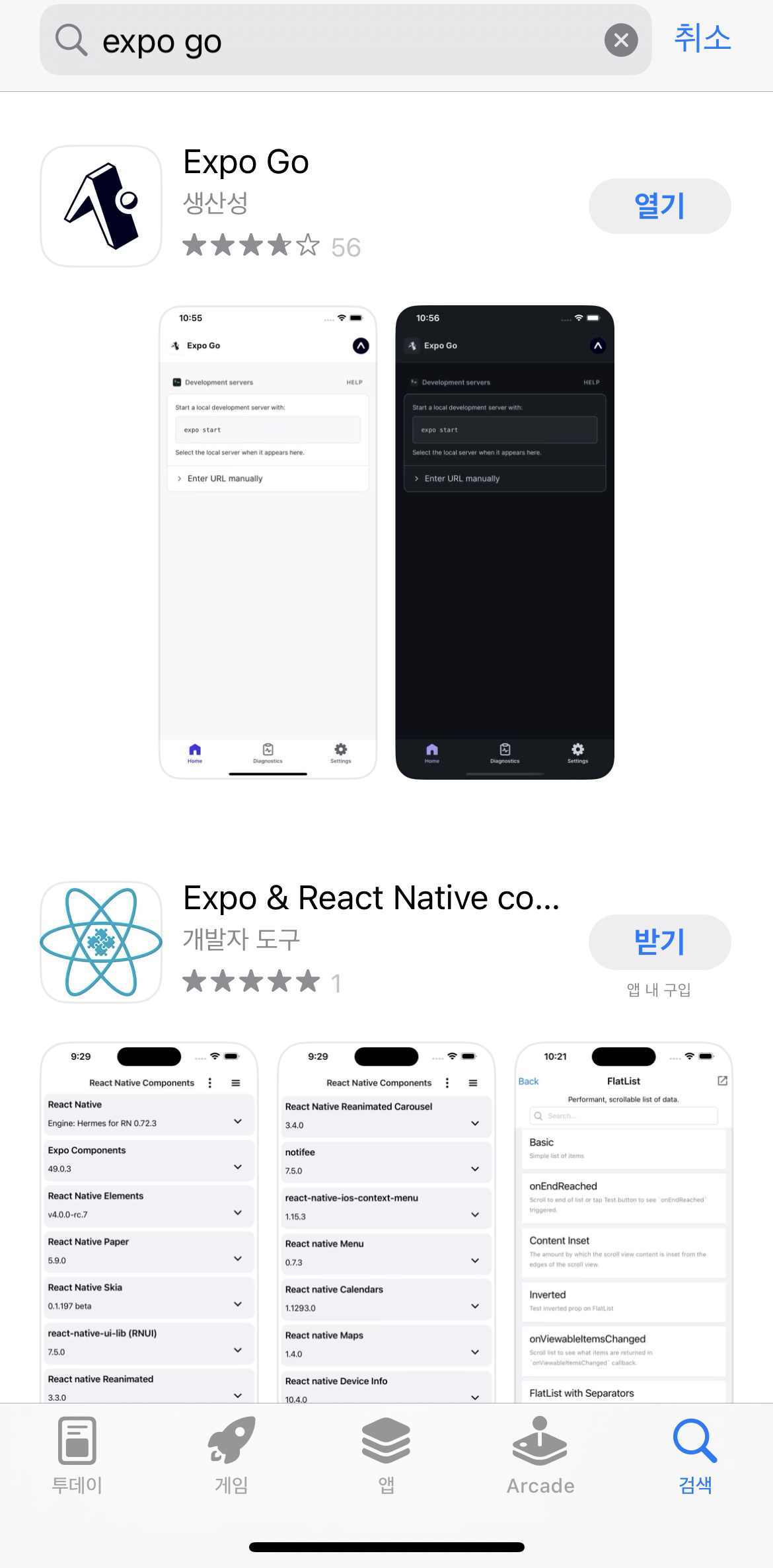 우선 시작하기전에 사용하고 계신 스마트폰에서 "EXPO GO" 라는 앱을 다운받아주세요