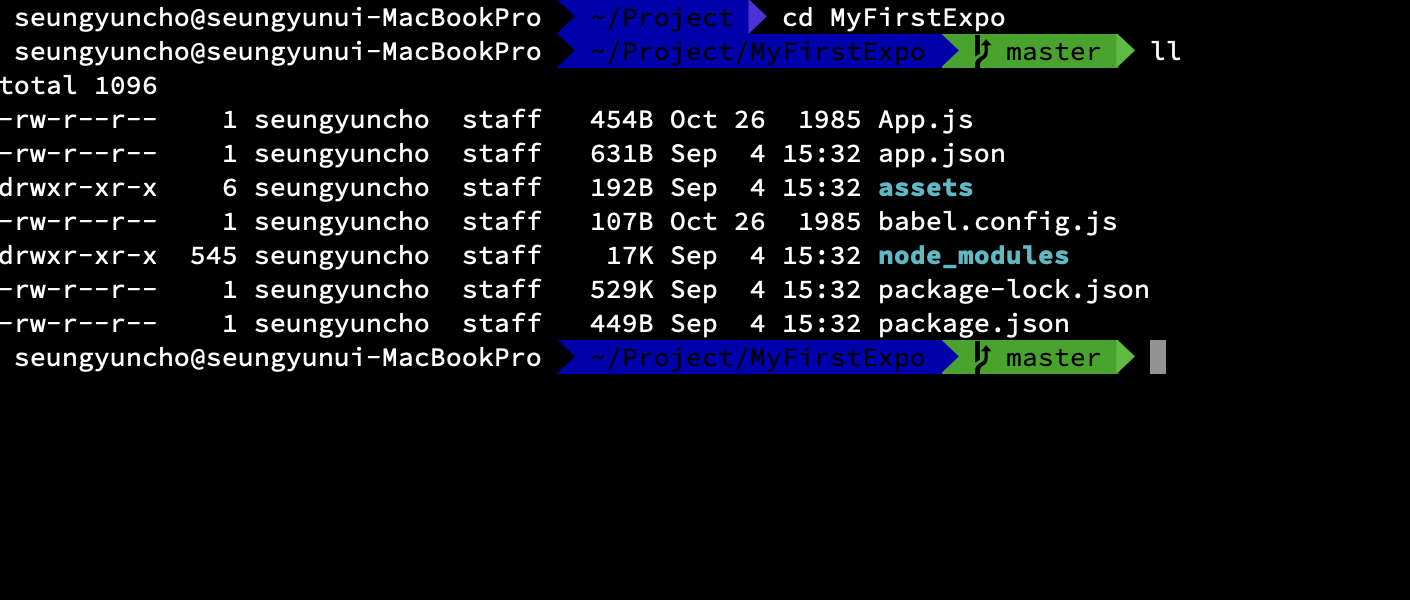 이제 Expo 관련 명령어를 사용해보겠습니다.