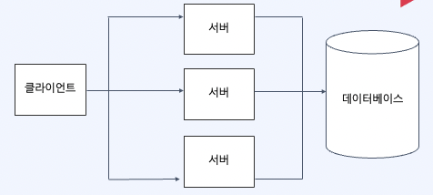 그러나 이렇게해도 어느순간 부터 사용자 불만이 다시 나올 수 있어요. 서버가 늘어난 만큼 동시에 데이터베이스에 요청하는 수가 많아질 것이고 데이터베이스 부하가 많아질거에요. 병목현상이 발생하게 됩니다.