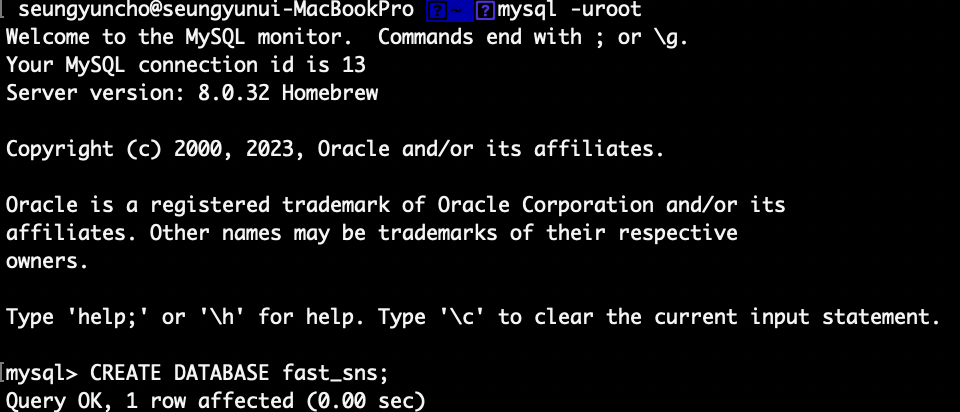 CREATE DATABASE fast_sns;