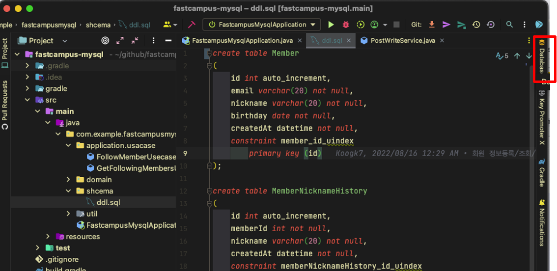 IntelliJ Ultimate 버전을 사용하는 분이라면 오른쪽 Tab에 Database가 보이시겠지만
