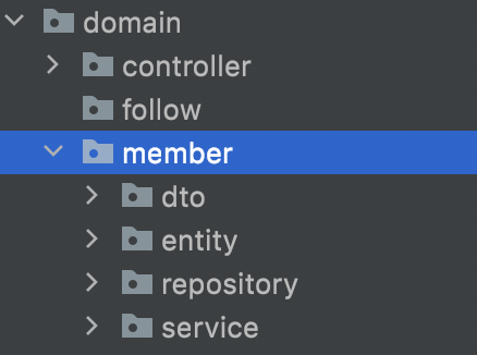 member라는 package를 생성하고 하위에 dto, entity,repository, service package를 추가로 생성했어요. 각 Package의 역할을 간단히 설명하자면