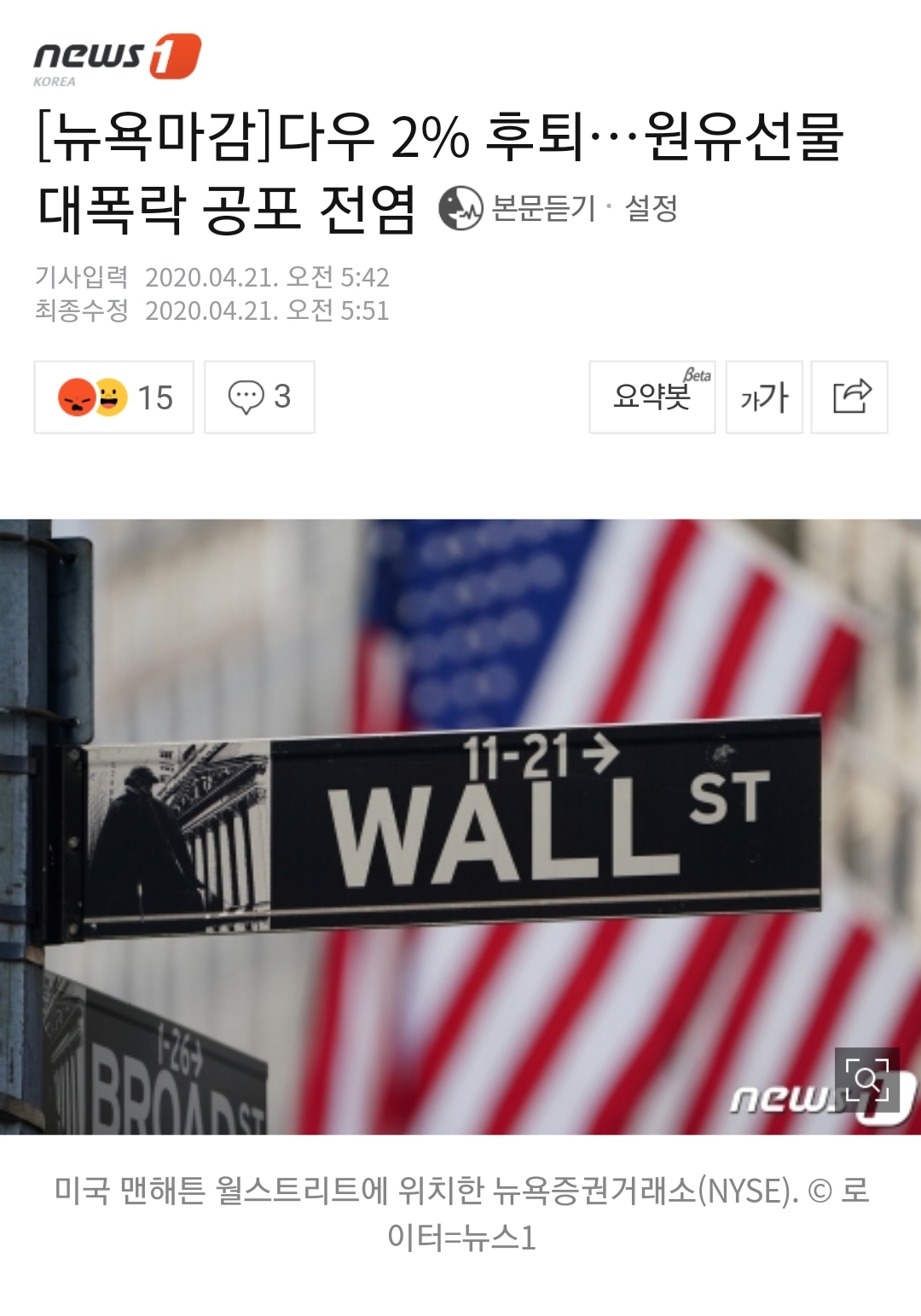 미 주요증시는 모두 하락했다. 밤 사이 무슨일이 있었나 알아보니.. 유가가 마이너스? 라는 말도 안되는 기사를 보았다.