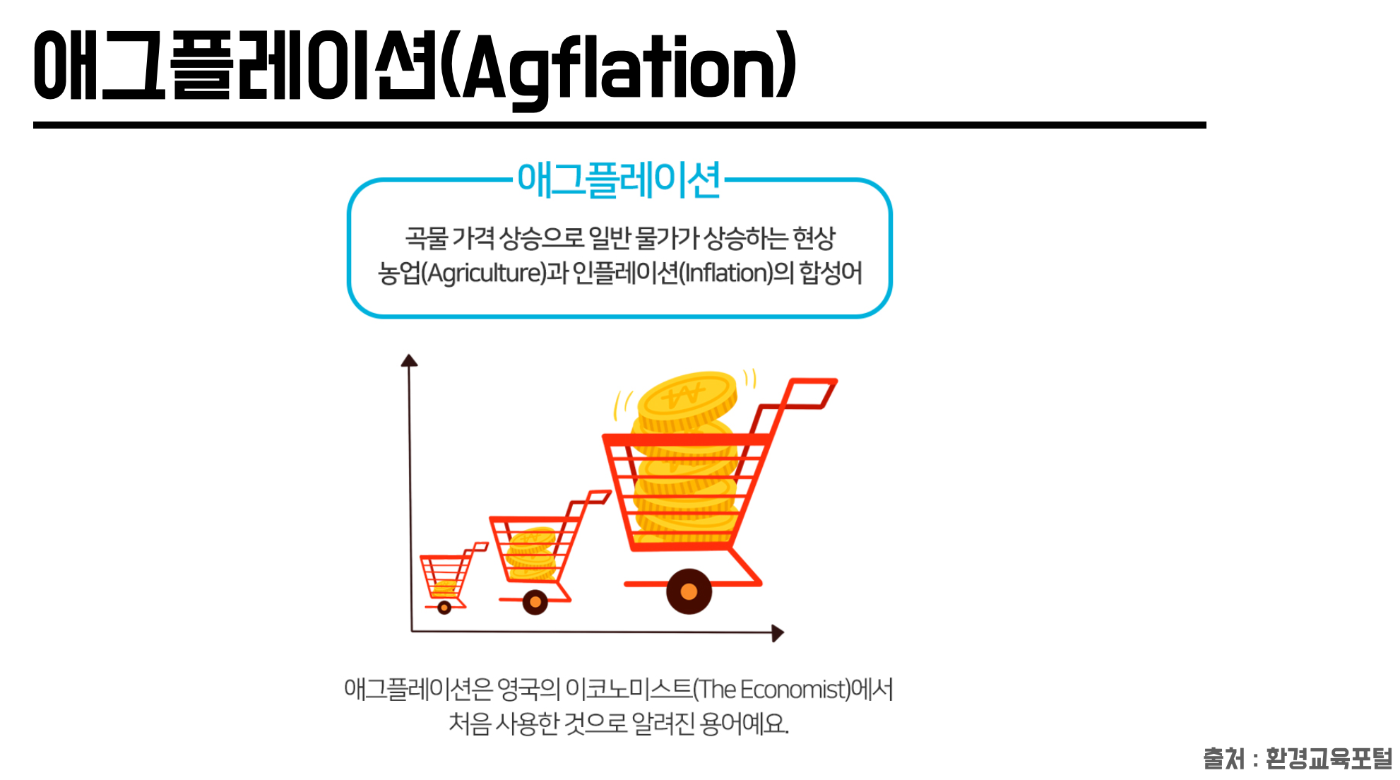 즉 물가가 오르는 것이고 이를 '애그플레이션'이라 한다.
