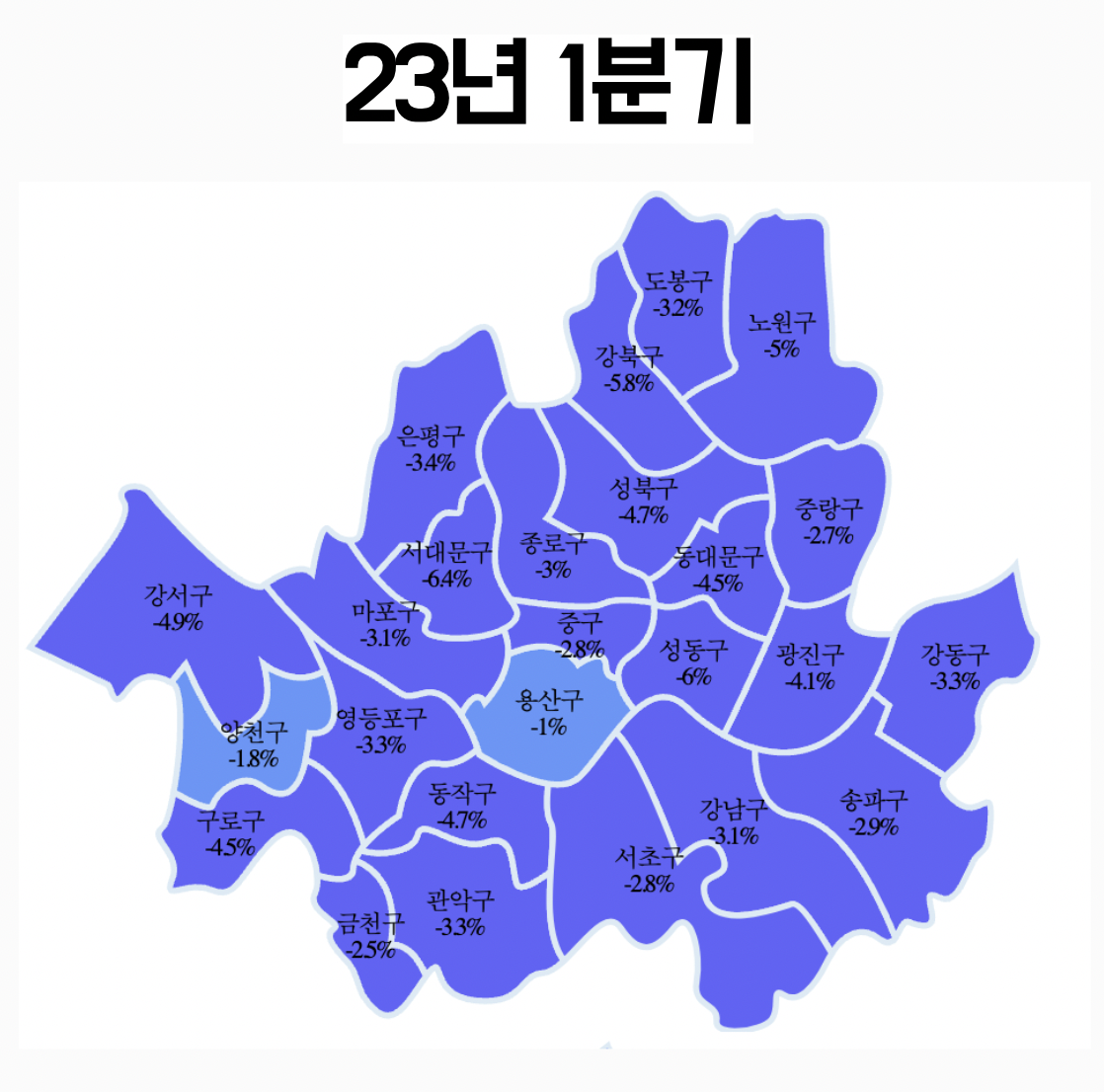 강남, 서초, 송파구 역시 1분기에만 2~3% 하락했습니다.