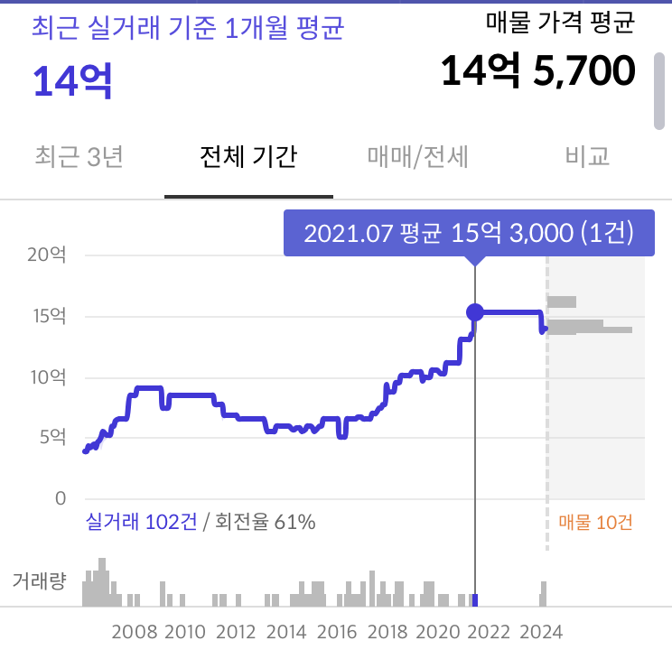 | 거래량, 가격 | 거래량이 많지는 않지만 현재 호가는 인근 아파트보다 3~4억가량 저렴 |