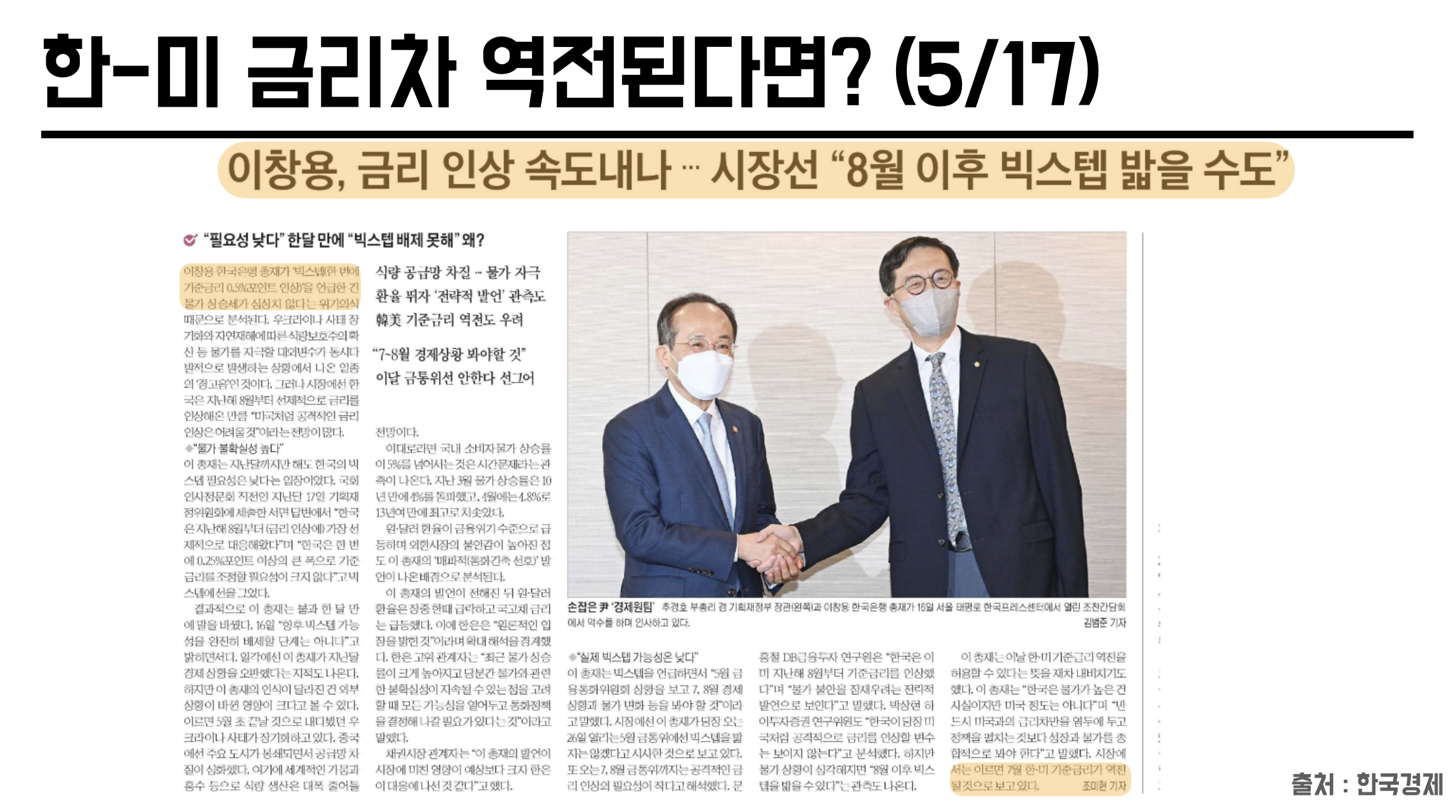 이창용, 금리 인상 속도내나…시장선 "8월 이후 빅스텝 밟을 수도", '빅스텝' 카드 꺼낸 이창용 "기준금리 0.5%P 인상 배제 못해" 국고채 금리 급등…환율은 하락