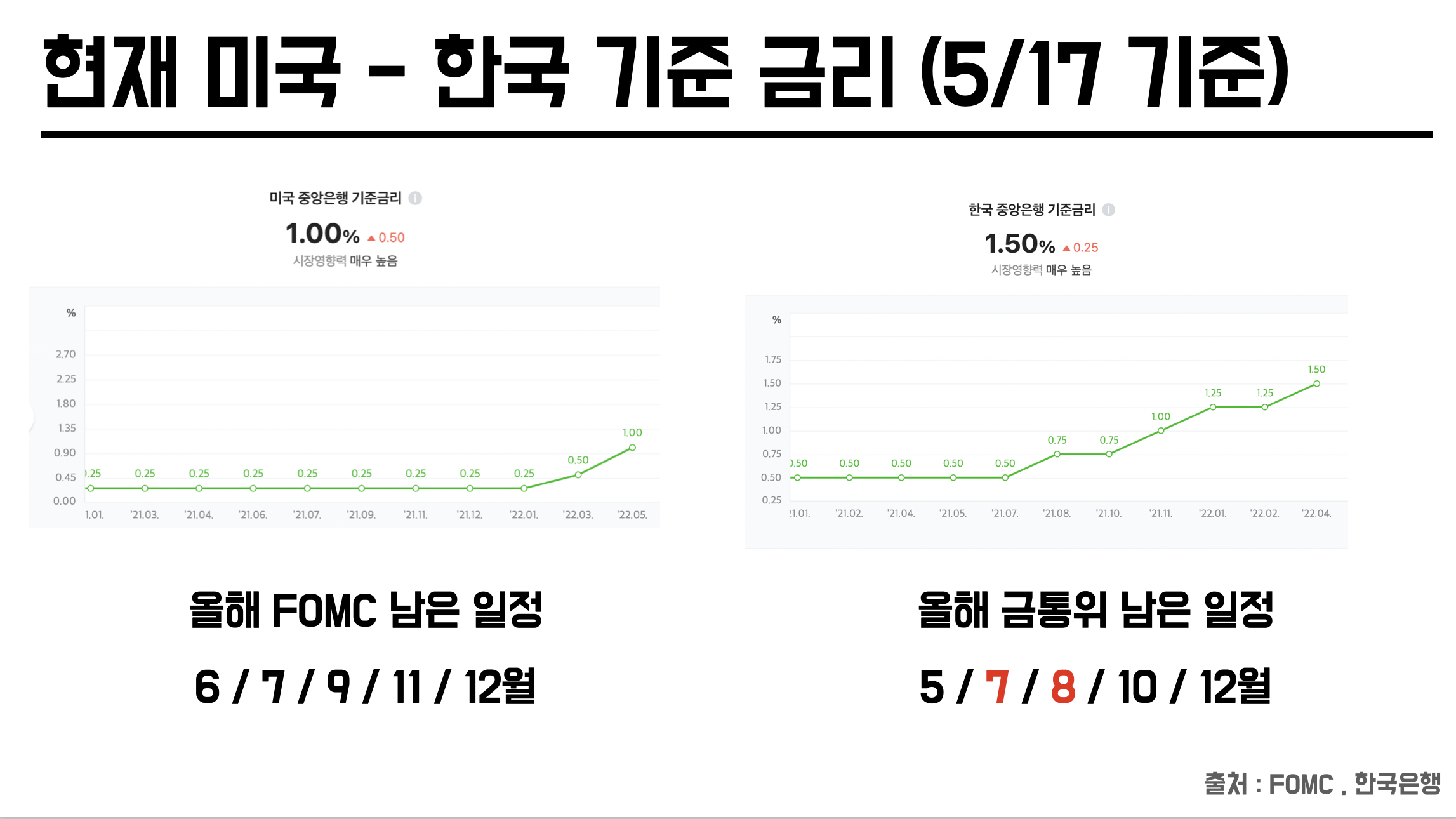 만약 5월 한통위(한국 금융통화위원회) 에서 금리인상 하지 않으면 6월에는 금리 동일 / 7월에는 금리 역전이 일어날 수 있는 상황이다.