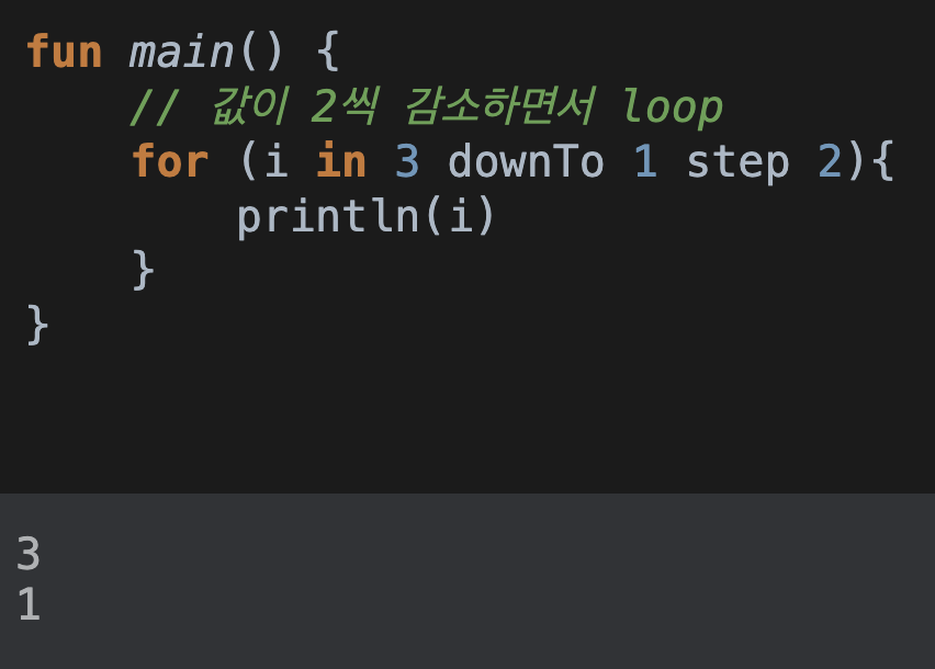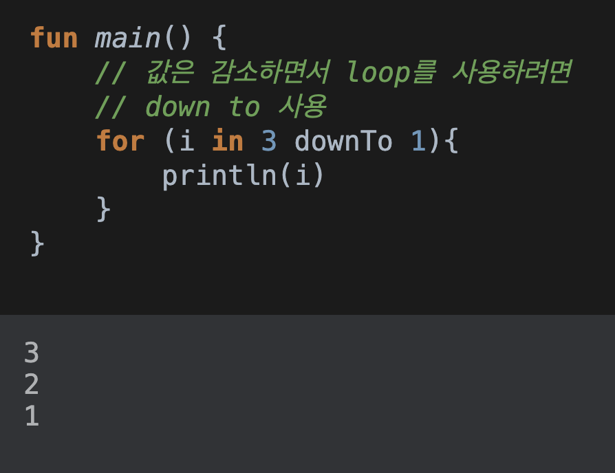 이때는 downTo라는 키워드를 사용하면 됩니다.