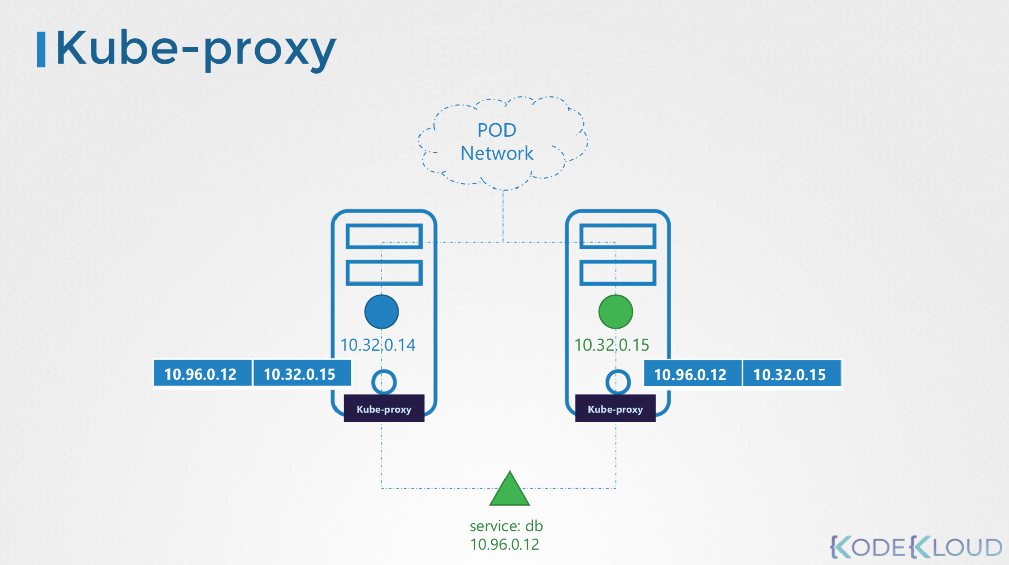 kube-proxy는 각 노드에서 실행되고 있으며, IPTABLE rule을 사용하여 kube-proxy <-> server <-> kube proxy와 통신할 수 있다.